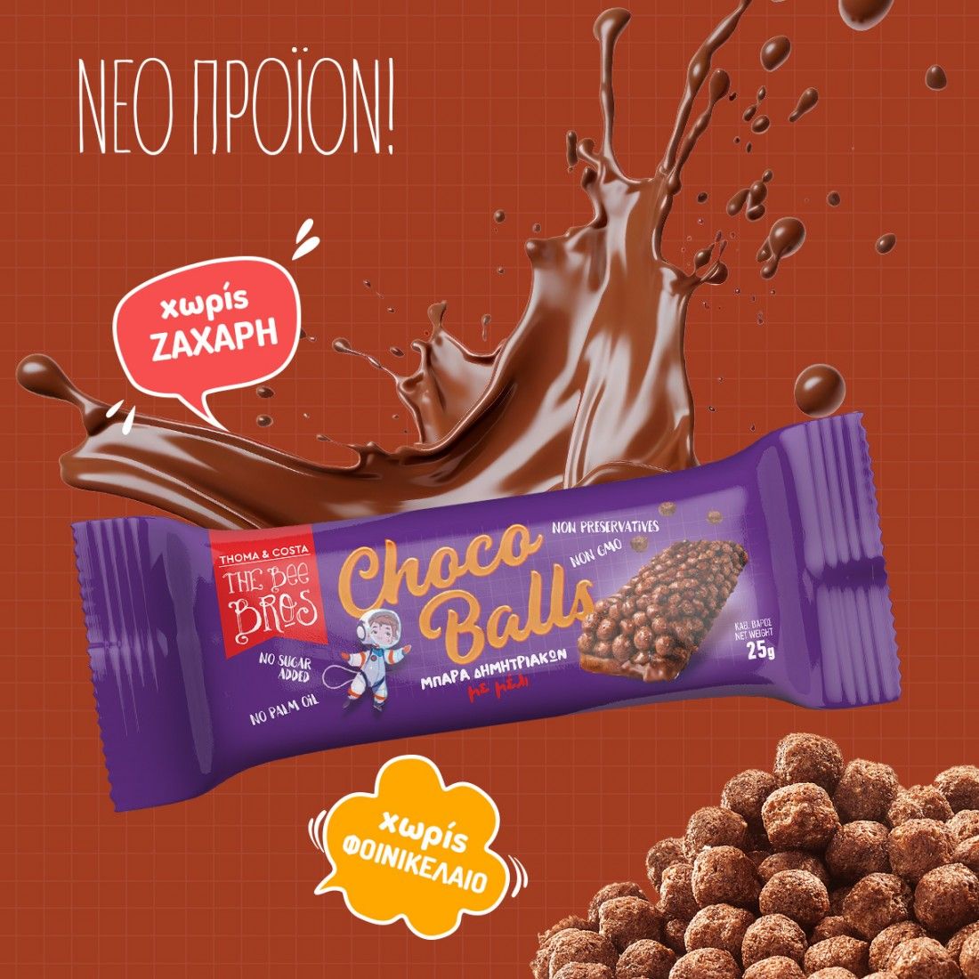 Η Bee Bros δημιούργησε τις πιο νόστιμες μπάρες, χρησιμοποιώντας ως βάση τα αγαπημένα μας δημητριακά Choco Balls και μέλι! Με λιγότερες από 100 θερμίδες, θα γίνουν το αγαπημένο σνακ όλων στο σχολείο ή στη δουλειά.