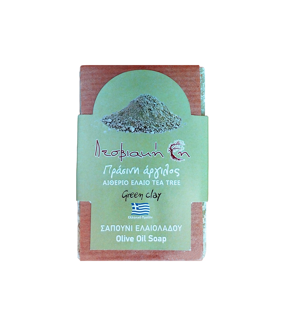 Λεσβιακή Γη Σαπούνι Ελαιολάδου με Πράσινη Άργιλο & Αιθέριο Έλαιο Tea Tree 100gr ΣΑΠΟΥΝΙΑ & ΧΕΙΡΟΠΟΙΗΤΑ ΣΑΜΠΟΥΑΝ